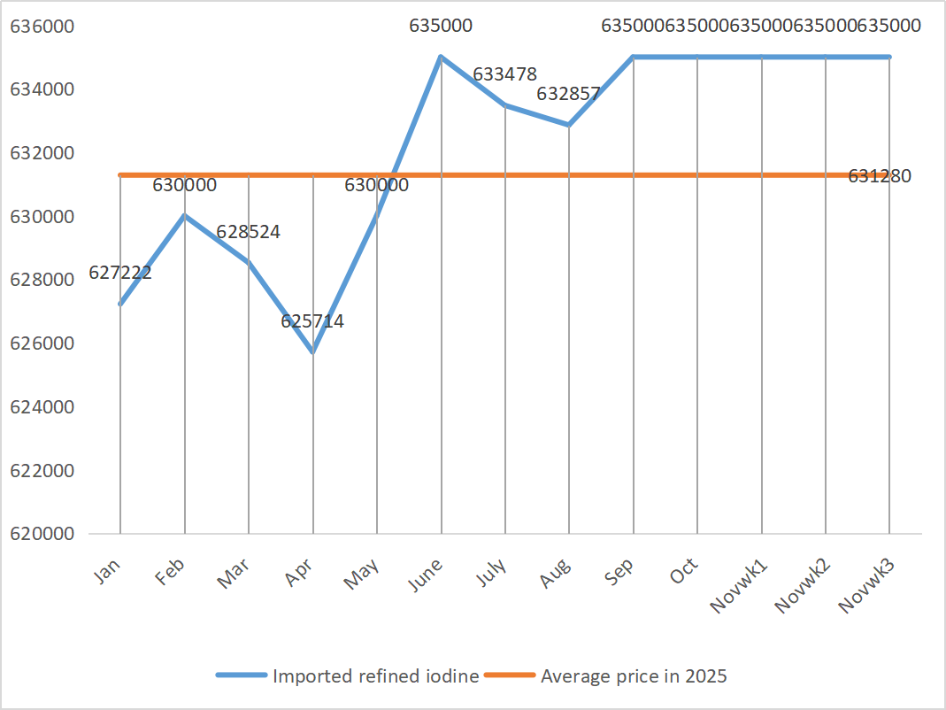 | The price of imported refined iodine by Business Society | Yuan/ton |