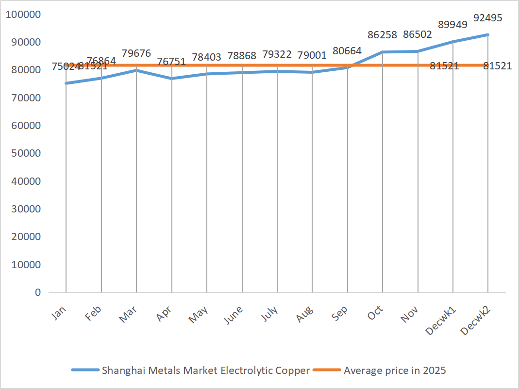 Overall, copper prices are likely to remain in a range of 91,000-94,000 yuan per ton in the short term (within the year), with demand for buying at low prices after a pullback at high levels expected to support prices. Attention should be paid to the progress of inventory reduction and the policy direction of the Federal Reserve.