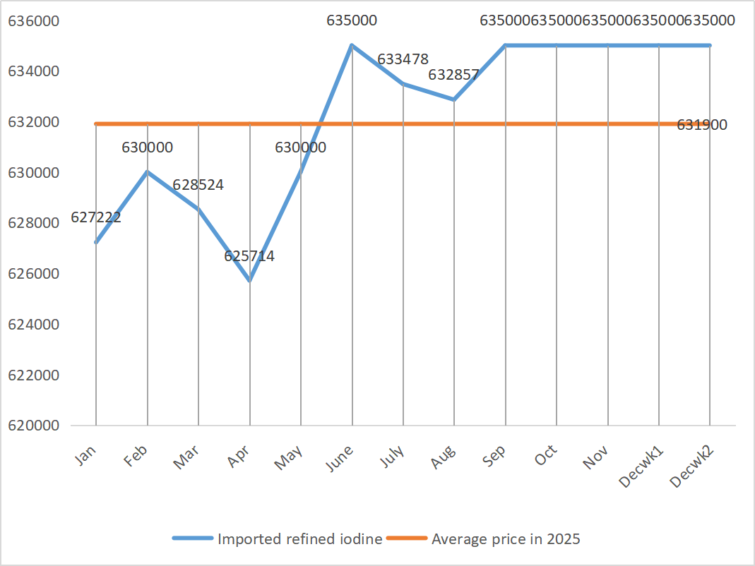 | The price of imported refined iodine by Business Society | Yuan/ton |