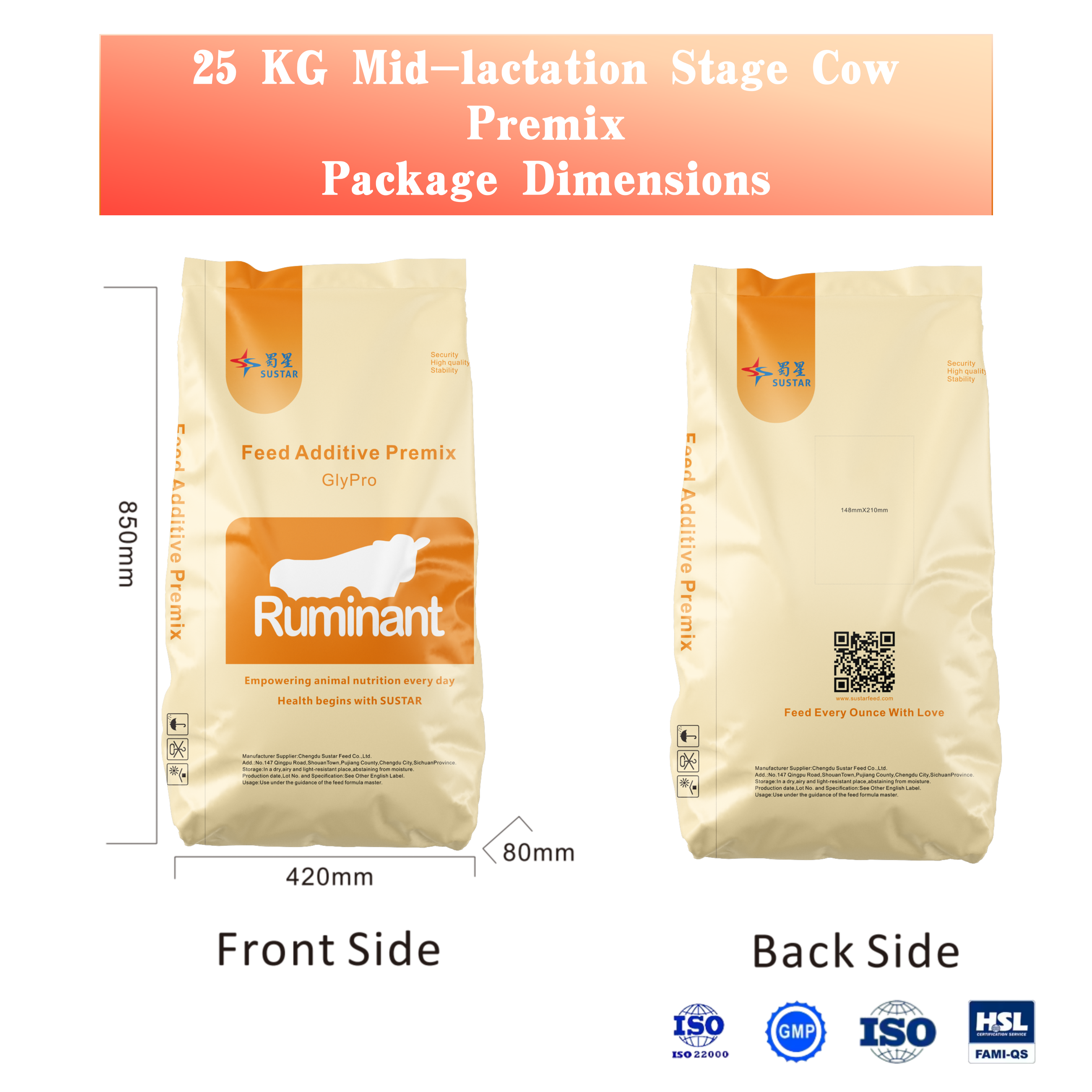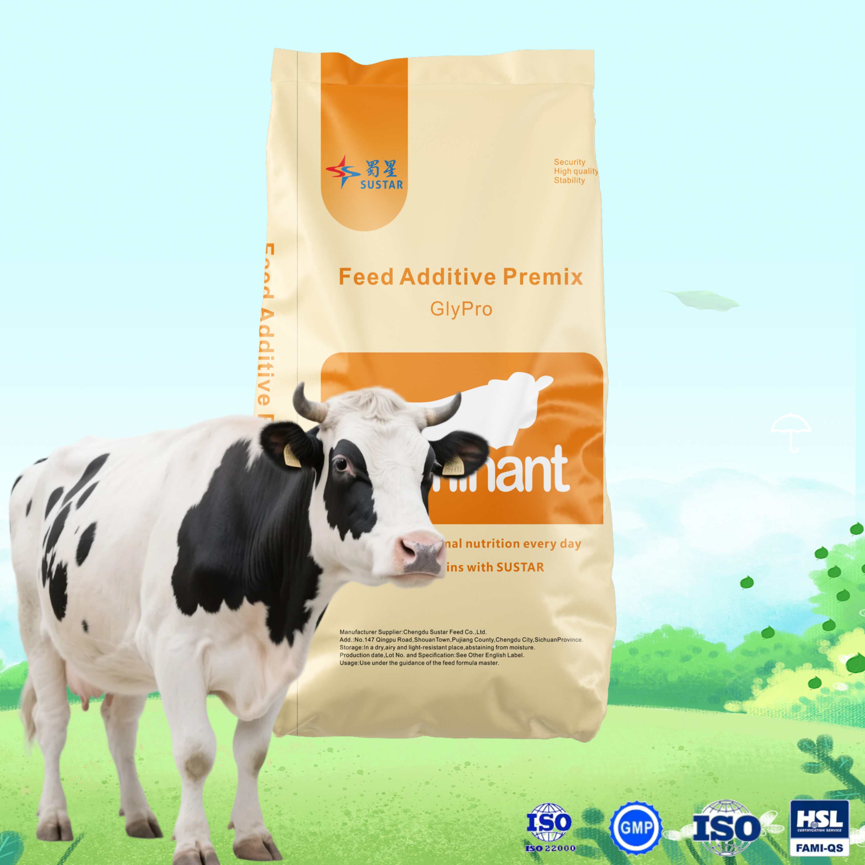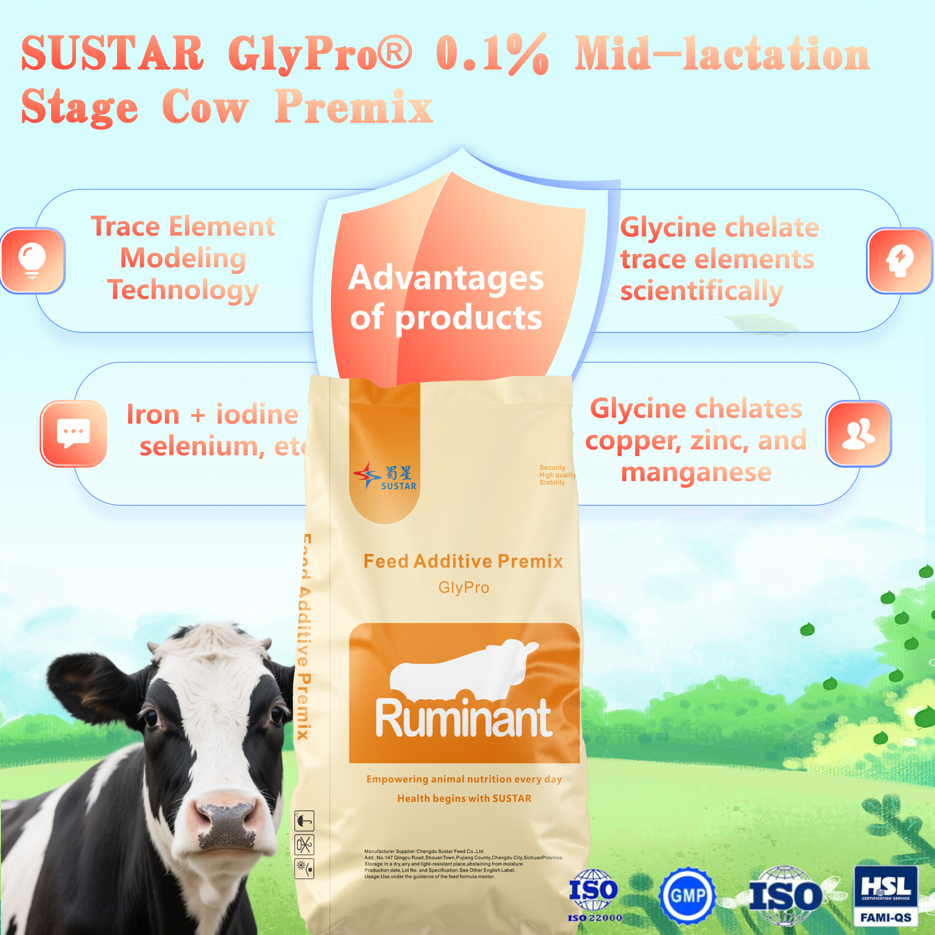The dairy cow premix provided by Sustar is a complete premix of vitamins and trace elements, which combines glycine chelated trace mineral and inorganic trace mineral in accordance with scientific proportions, which is suitable for dairy cow feeding.