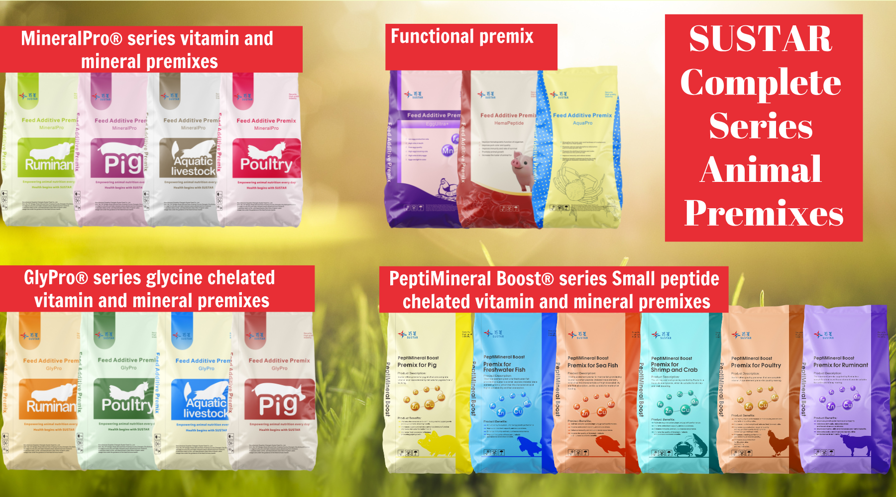 The Saltwater fish premix provided by Sustar is a complete premix oftrace elements, which combines glycine chelated trace mineral and inorganic trace mineral in accordance with scientific proportions, which is suitable for Saltwater fish feeding.